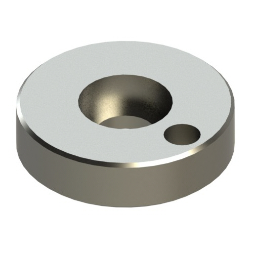 Die "Klemmplatte rund" klemmt die Werkstücke zwischen Klemmplatte und Spannwelle. Dadurch ergibt sich eine kompakte Spannmöglichkeit. Die Spannhöhe wird mit der Gegendruckschraube eingestellt |